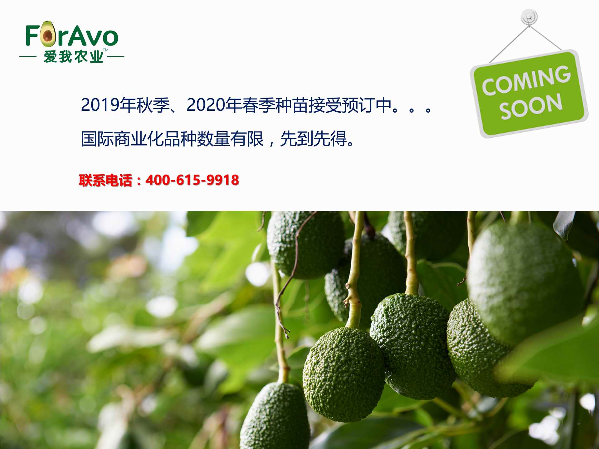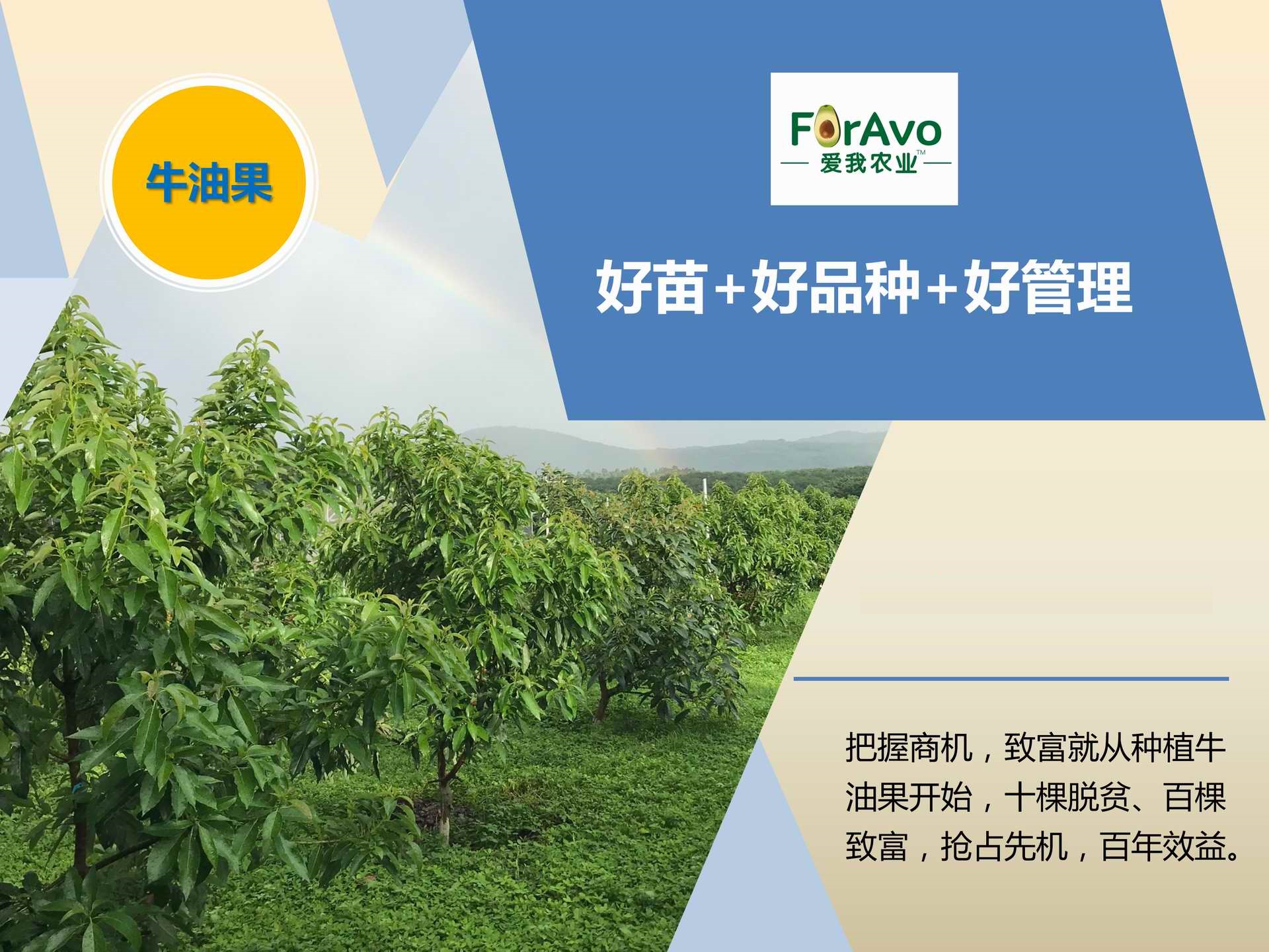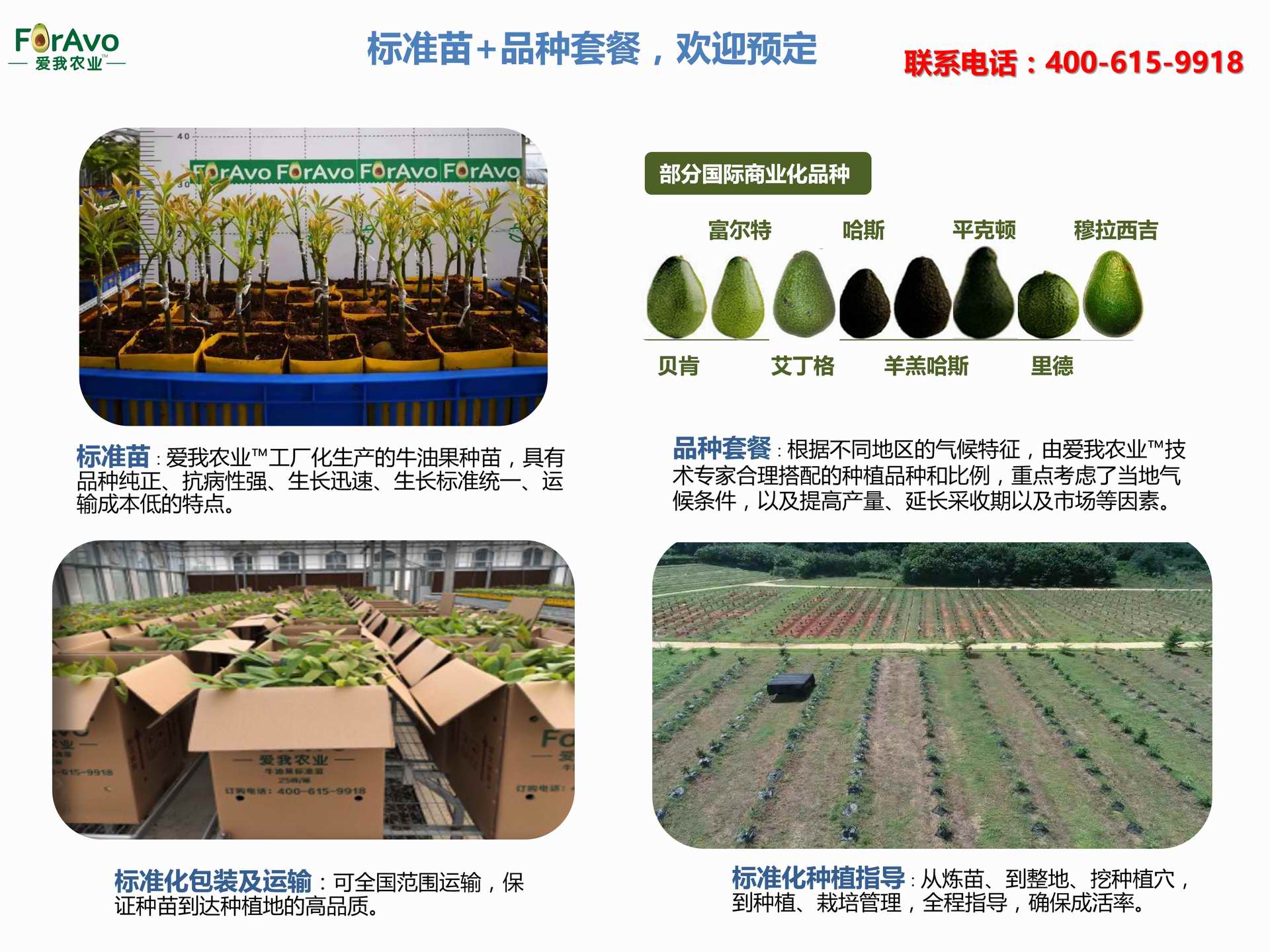 海南愛我農(nóng)業(yè)科技有限公司是一家綜合性的高科技農(nóng)業(yè)發(fā)展企業(yè),旗下愛我農(nóng)業(yè)TM致力于打造中國(guó)最大最強(qiáng)的牛油果種植企業(yè)。依托美國(guó)、南非、澳大利亞等擁有百年牛油果繁育、種植歷史以及產(chǎn)業(yè)鏈?zhǔn)袌?chǎng)的優(yōu)勢(shì),開展牛油果種苗繁育、種植技術(shù),種植加盟、深加工等產(chǎn)業(yè)。結(jié)合中國(guó)市場(chǎng),面向廣大苗圃基地、種植農(nóng)場(chǎng)、合作加工等企業(yè),推出的適合規(guī)?;?、標(biāo)準(zhǔn)化的牛油果全產(chǎn)業(yè)鏈服務(wù)。 Hainan Foravo Agricultural Technology Co., Ltd. is a comprehensive high-tech agricultural development enterprise , dedicated to building the largest and most powerful avocado plantation enterprise in China. Relying on the advantage of avocado nursery, planting history, and the industrial chain over 100 years in the United States, South Africa, Australia, we are carrying out nursery, planting, proce...